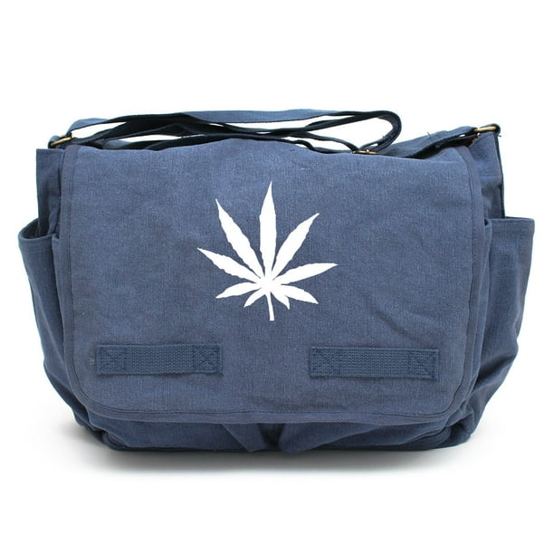 Marijuana Leaf Weed Pot Army Heavyweight Messenger Shoulder Bag White On Blue Canvas Walmart Com